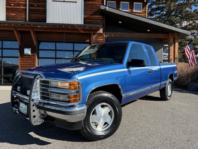 K1500, extended-cab, 4x4, 5.7L Vortec 8-cylinder gas engine, 4-speed automatic transmission, Medium Royal Blue Metallic, blue cloth interior, all power options, power windows, power locks, chrome bumpers, leather wrapped steering wheel, easy access 3rd door, 1-owner, 75k