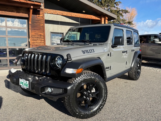 Willys 4x4 2.0L 4-cylinder turbo engine, 8-speed automatic transmission, heated seats, heated steering wheel, rear privacy glass, power windows and locks, cruise control, 7.0-inch factory touch-screen stereo with soundbar and bluetooth, power heated mirrors, keyless entry, 57K