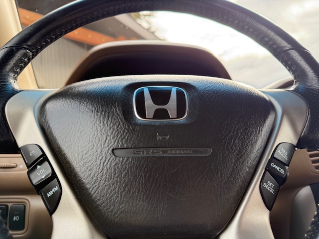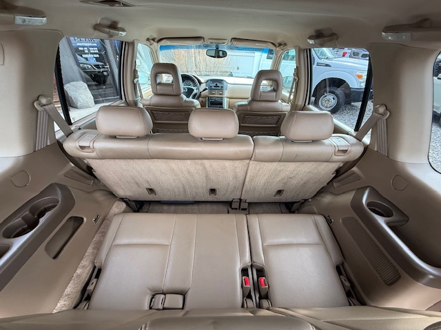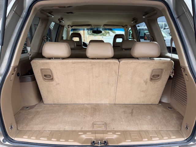 This is a 2003 Honda Pilot EX-L All-Wheel Drive with the 3.5L 250hp SOHC VTEC 6-cylinder engine and an automatic transmission. It is sandstone metallic with tan leather interior and only has 84,000 original miles. It has all power options, eight passenger seating, leather seats, CD player/Cassette player, nerf bar side steps, third row seats, roof rack, keyless entry, fog lights, factory 16″ aluminum wheels with nice Pathfinder HT all-season tires and privacy glass. It will get 17mpg in town and 22mpg on the highway. This Pilot is a one-owner from Torrance, California that has been well maintained and has been non-smoker owned. CARFAX guaranteed professionally serviced and detailed.