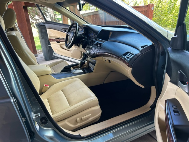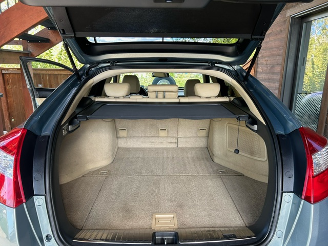 This is a 2010 Honda CrossTour EX-L all-wheel drive with the 3.5L 271hp SOHC VTEC 6-cylinder engine and a 5-speed automatic transmission. It is Glacier Blue Metallic with beige leather interior. It has 100,000 miles. It has heated seats, a power glass moonroof, 18-inch factory alloy wheels with nice Goodyear all-season tires, bluetooth phone, XM satellite radio, back-up camera, privacy glass, fog lights and all power options. This CrossTour is a 3-owner form southern California that has been well maintained at the Honda dealership and has been owned by a non-smoker. It is EPA rated at 17mpg in town and 25mpg on the highway. New timing belt, water pump, cv axles, etc.. CARFAX guaranteed professionally serviced and detailed.