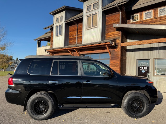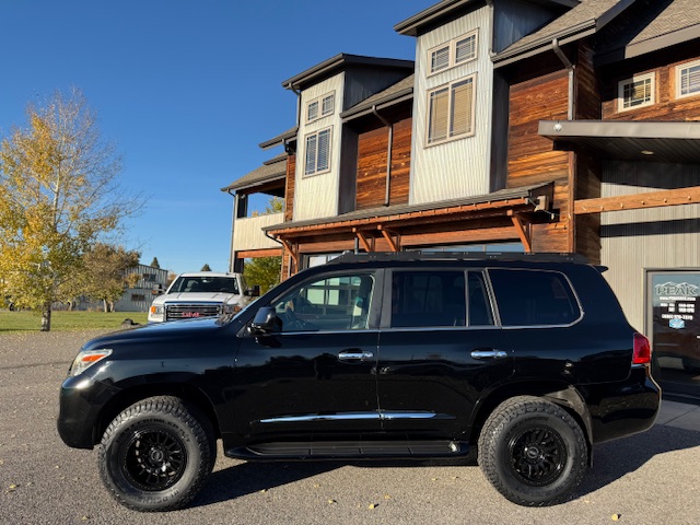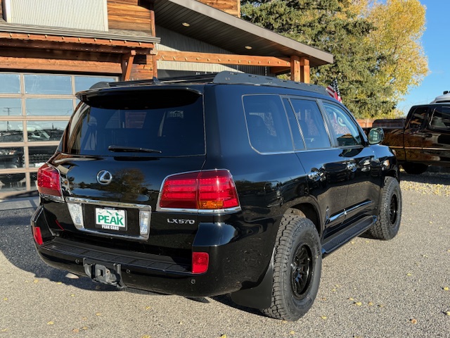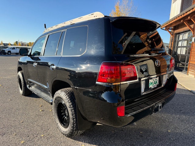 This is a 2011 Lexus LX570 with the 383hp 5.7L 8-cylinder gas engine and a 6-speed automatic transmission. It is black with black leather interior and has 177,000 miles. The LX570 comes standard with all premium options including adaptive front lighting system, factory touch screen Radio/CD player with AUX/USB input, Bluetooth, Satellite radio, back-up camera, power sun-roof, easy access mode, tow package, running boards, power fold-away 3rd row seats, climate controlled front and rear seats (heated and cooled), cooled center console fridge, power center row seating, front/sideview camera, adaptive variable suspension, Baja Design fog lights, custom roof rack, 17-inch RRW Relations Race Wheels with new Blackhawk Ridgecrawler all-terrain tires and privacy glass. With a nearly 6000-lb. curb weight, the LX drives like nothing else on the road. This Lexus is from Cathedral City, California and has been well maintained and has been non-smoker owned. CARFAX guaranteed, professionally serviced and detailed.