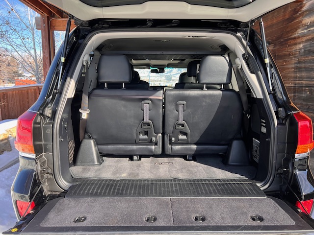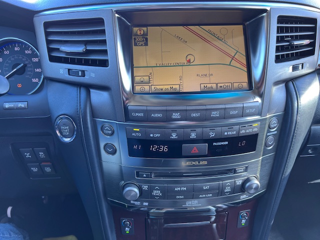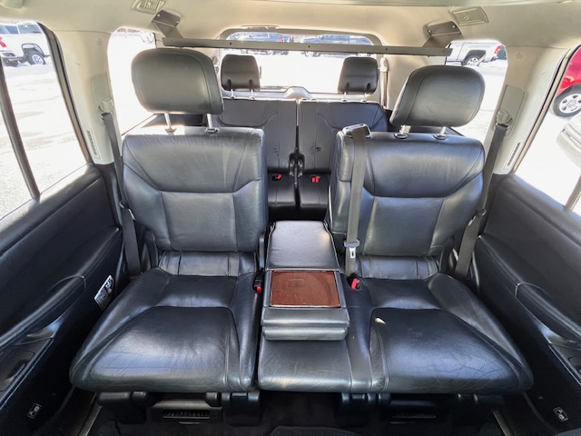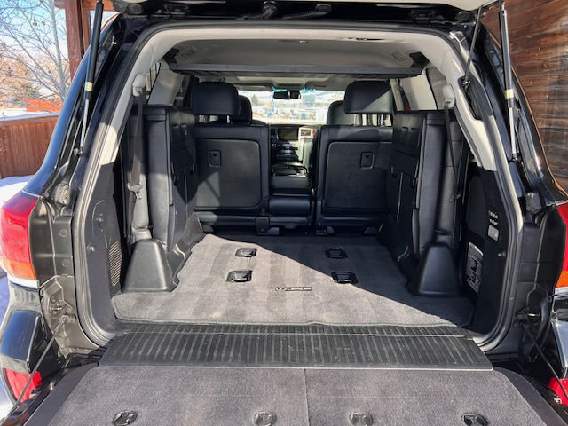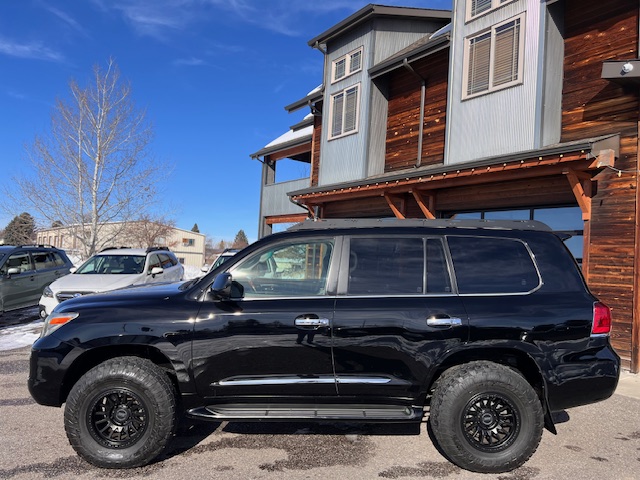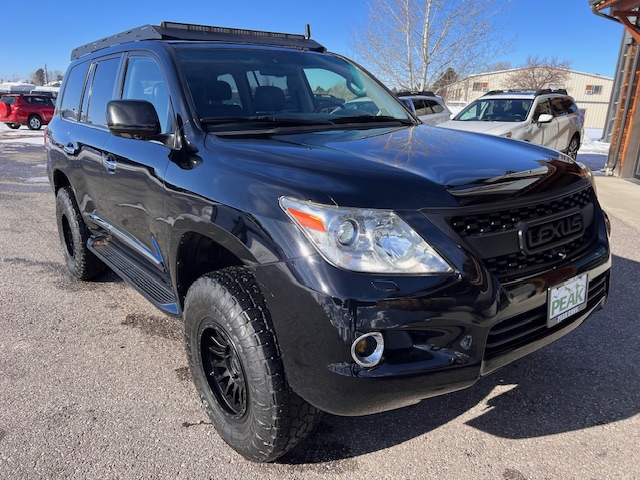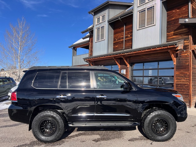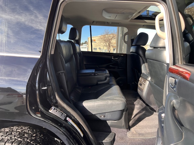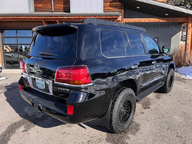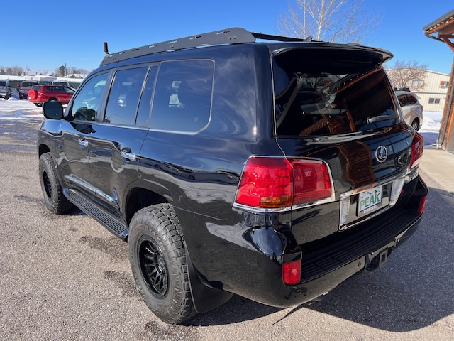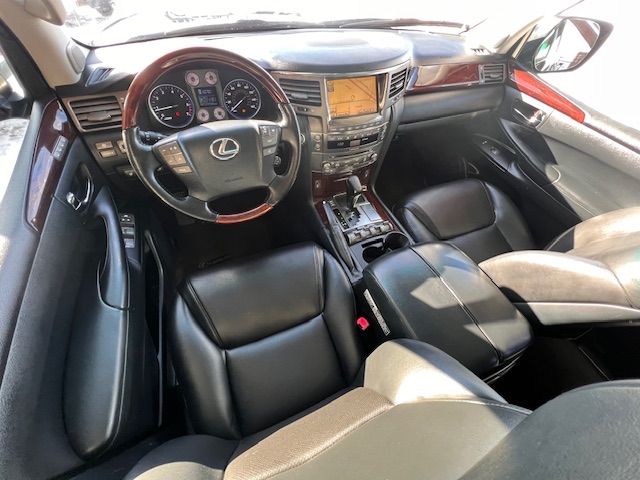 This is a 2011 Lexus LX570 with the 383hp 5.7L 8-cylinder gas engine and a 6-speed automatic transmission. It is black with black leather interior and has 177,000 miles. The LX570 comes standard with all premium options including adaptive front lighting system, factory touch screen Radio/CD player with AUX/USB input, Bluetooth, Satellite radio, back-up camera, power sun-roof, easy access mode, tow package, running boards, power fold-away 3rd row seats, climate controlled front and rear seats (heated and cooled), cooled center console fridge, power center row seating, front/sideview camera, adaptive variable suspension, Baja Design fog lights, custom roof rack, 17-inch RRW Relations Race Wheels with nice 285/70/17 Toyo Open Country AT III tires and privacy glass. With a nearly 6000-lb. curb weight, the LX drives like nothing else on the road. This Lexus is from Cathedral City, California and has been well maintained and has been non-smoker owned. CARFAX guaranteed, professionally serviced and detailed.