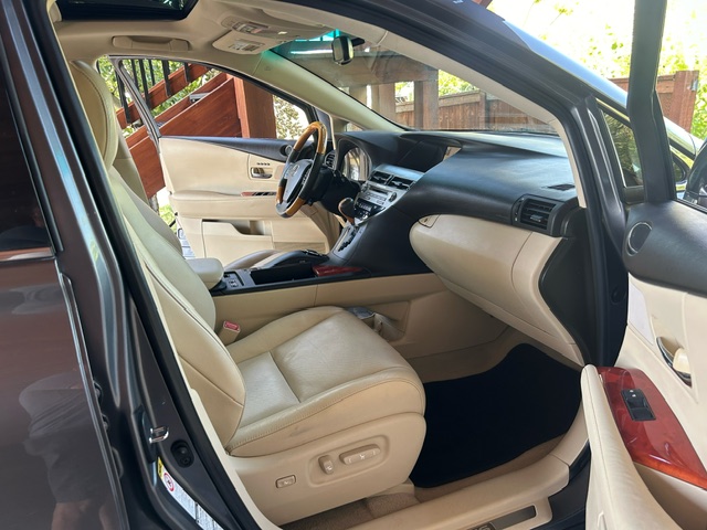 This is a 2012 Lexus RX 350 all-wheel drive SUV with the 3.5L 6-cylinder gas engine and an automatic transmission. It is dark gray with beige leather interior. This Lexus has 102,000 miles. It has heated and cooled leather seats, factory stereo/CD player, power glass moonroof, navigation with tech. package, back-up camera, factory 19″ wheels with nice Michelin Primacy all-season tires, privacy glass, roof rack, fog lights, cruise control and all power options. It is EPA rated for 18mpg city and 25mpg highway. This Lexus is from southern California and has been very well maintained and has been non-smoker owned. This is a timing chain car not a timing belt. CARFAX guaranteed, professionally serviced and detailed.