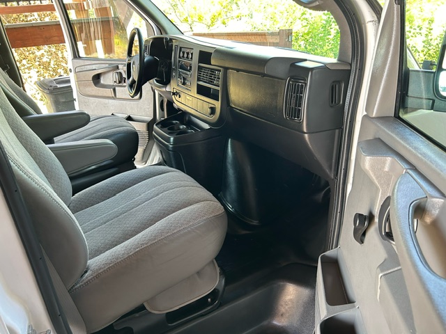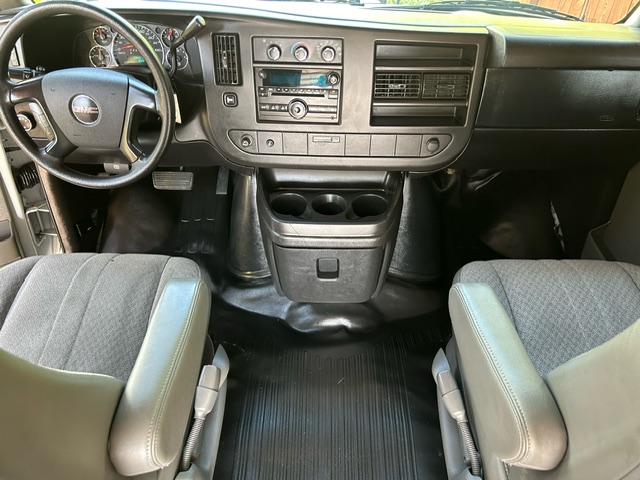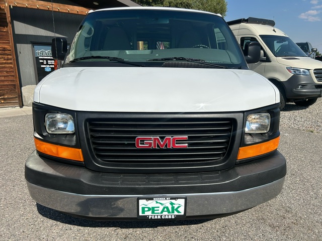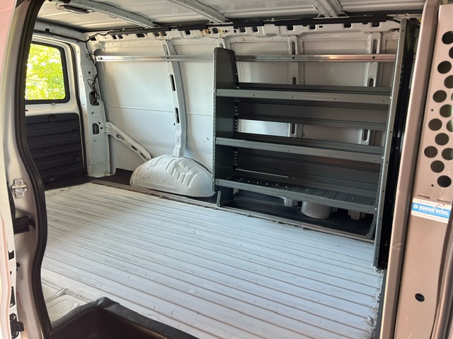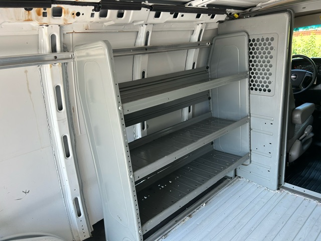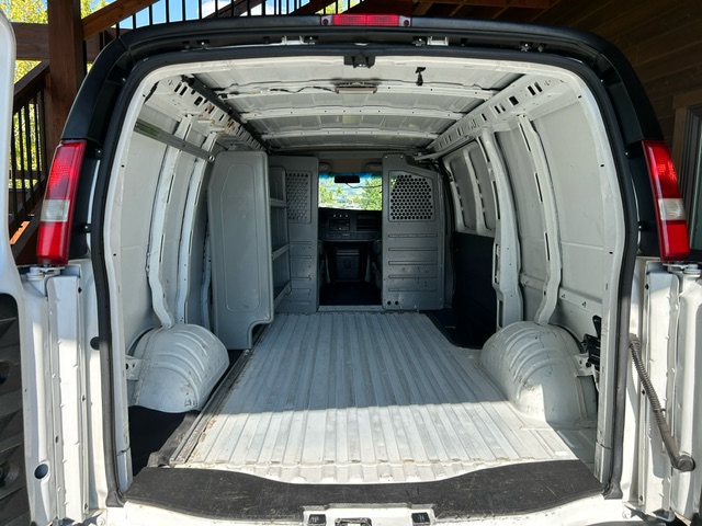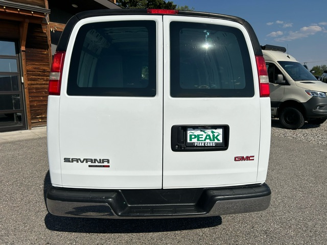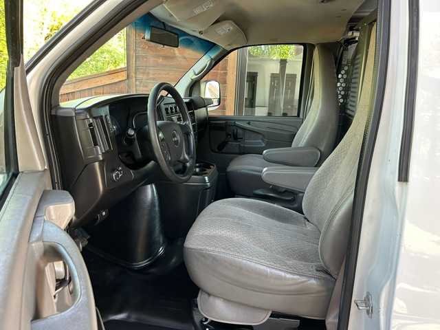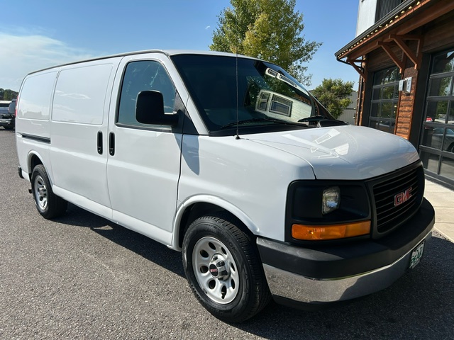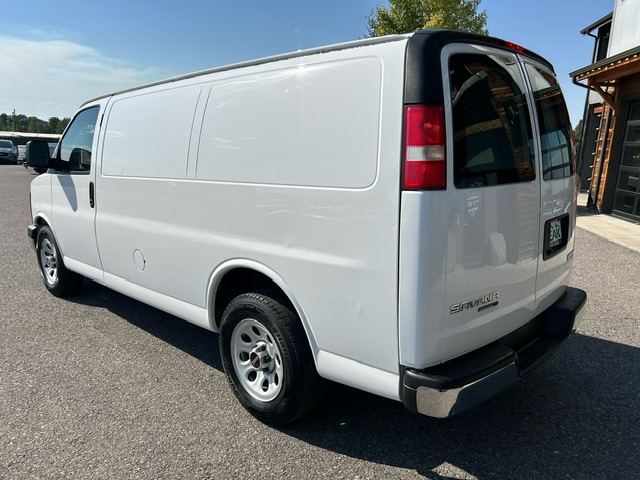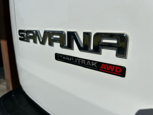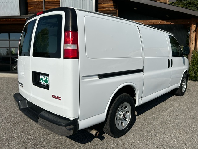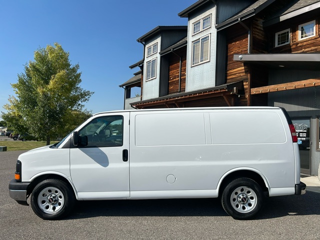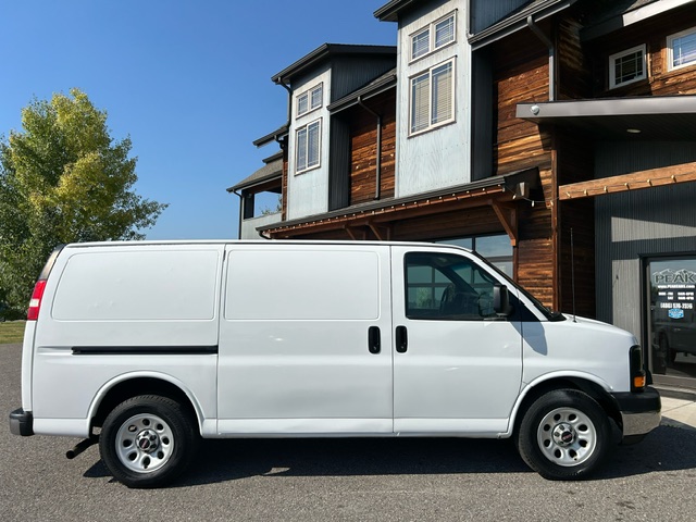 This is a 2013 GMC Savana 1500 cargo van all-wheel drive with the 5.3L Vortec 8-cylinder gas engine and an automatic transmission. This Savana AWD has 103,000 miles. It is white with gray plastic interior and black plastic floors. It has air conditioning, passenger sliding door, rear cargo doors with glass, factory stereo/CD player, cruise control, back-up camera, cargo shelves, with nice Hankook all-season 10-ply tires. It is an all-wheel drive van that does well on bad roads. This Savana is a local three-owner from Nevada that has been well maintained and has been non-smoker owned. CARFAX guaranteed, professionally serviced and detailed.