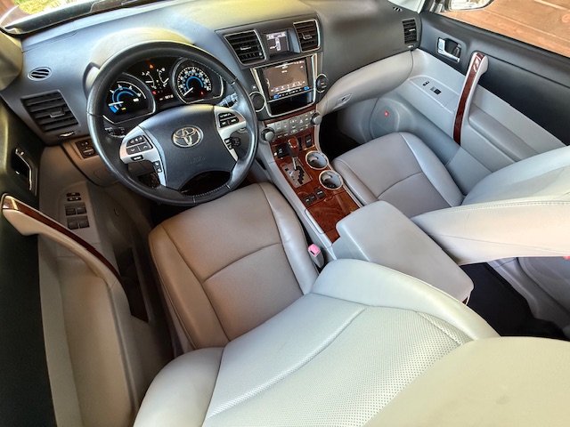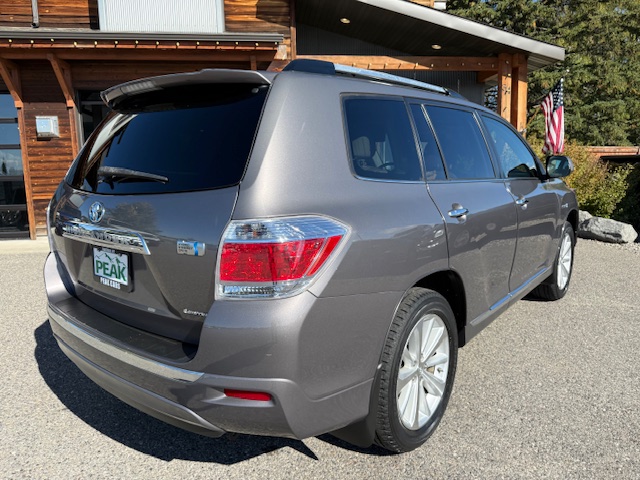 This is a 2013 Toyota Highlander Limited Hybrid all-wheel drive SUV with the 3.3L 6-cylinder gas/hybrid engine and an automatic transmission. It is Predawn Gray Mica in color with gray leather interior. This Highlander has 98,000 miles. It has dual power seats, rear back-up camera, factory stereo/CD player, power moonroof, heated seats, factory alloy wheels with Bridgestone Dueler all-season tires, privacy glass, roof rack, fog lights, 3rd row fold-away seat, cruise control and all power options. This Toyota is a 1-Owner from southern California that has been very well maintained and has been non-smoker owned. It is EPA rated for 28mpg city and 28mpg highway. CARFAX guaranteed, professionally serviced and detailed.