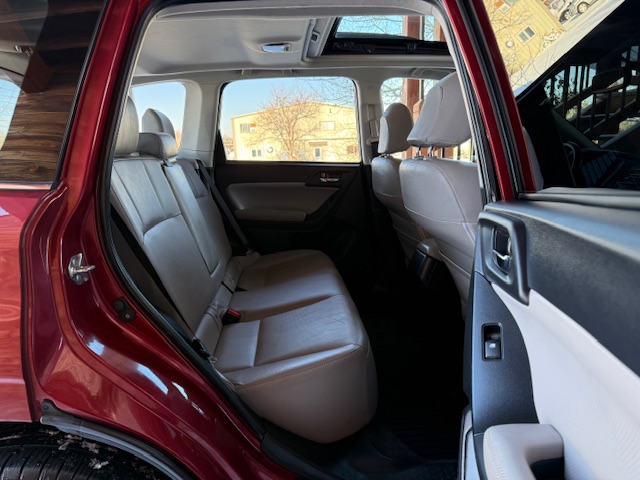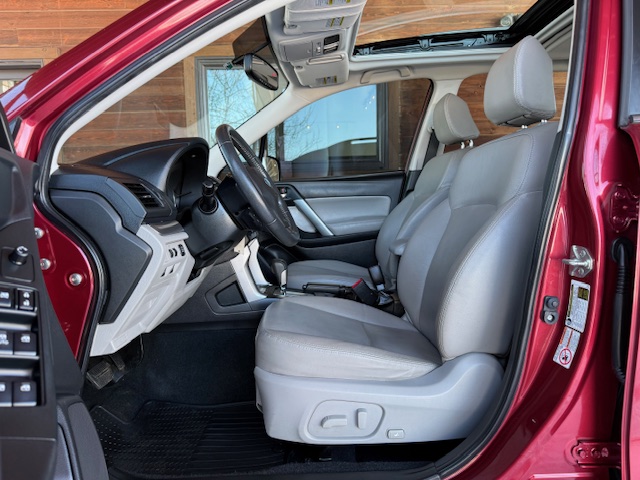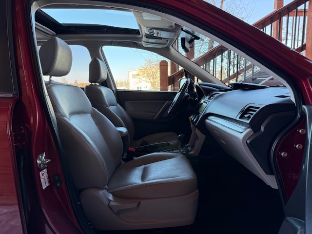 This is a 2014 Subaru Forester 2.5I Limited all-wheel drive wagon with the 2.5L 4-cylinder 16-valve engine and a automatic CVT transmission and has 74,000 miles. This Subaru is venetian red pearl with gray leather interior. It has heated leather seats, 17 inch factory alloy wheels with nice all-season tires, privacy glass, roof rack with crossbars, power glass panoramic moonroof, X-Mode, cruise control, rear back-up camera, heated side mirrors, steering wheel controls, bluetooth compatible and all other power options. It is rated for 24mpg city and 32mpg highway. This Forester is one-owner from Spokane Valley, Washington that has been well maintained and has been non-smoker owned. CARFAX guaranteed, professionally serviced and detailed. Warranties available.