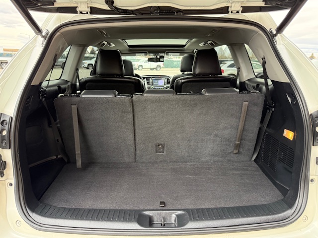 This is a 2014 Toyota Highlander Limited Platinum all-wheel drive with the 270HP DOHC 3.5L 6-cylinder and a 6-speed automatic transmission. It is Blizzard Pearl with black leather interior. This Highlander has 118,000 miles. It has all options including heated/cooled front seats, heated steering wheel, heated rear bucket seats, third row fold away seats, touch screen stereo with JBL sound system, power liftgate, bluetooth and Sirius, roof rack, blind spot monitoring, navigation capability, panoramic power glass moonroof, fog lights, rear privacy glass, Class III tow package, roof rack, 19-inch argent wheels with nice all-season Bridgestone tires, back-up camera. This Highlander is a 1-owner from California that has been well maintained and has been non-smoker owned. CARFAX guaranteed, professionally serviced and detailed.