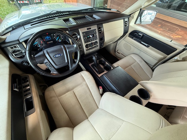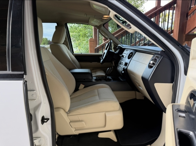 This is a 2015 Ford Expedition XL 4×4 with the 3.5L EcoBoost 6-cylinder gas engine and a 6-speed automatic transmission. It is white in color with dune tan cloth interior and only has 32,000 miles. This Expedition has power driver’s seat, fog lights, rear a/c and heat, Class III tow package, roof rack, privacy glass, cd player, factory brake controller, 17-inch alloy wheels with nice BFG A/T tires, middle row bench seating and all power options. It is EPA rated for 20mpg highway and 15mpg city. The Ecoboost has a lot of power and is fun to drive. This Expedition is a one-owner from Long Beach, California that has been well maintained and has been non-smoker owned. CARFAX guaranteed, professionally serviced and detailed.