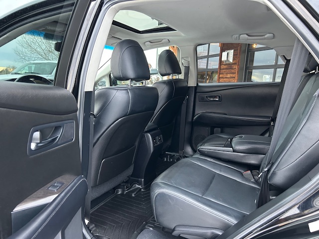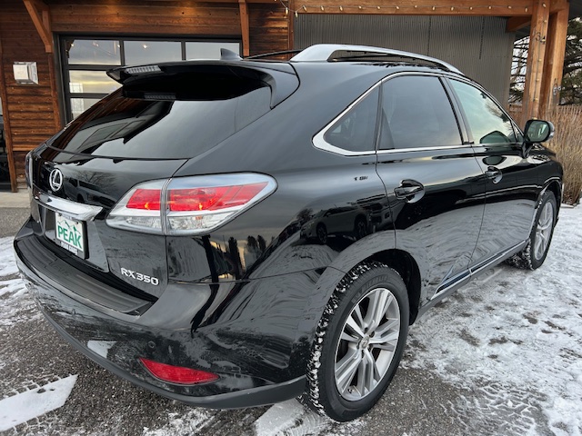 This is a 2015 Lexus RX 350 all-wheel drive SUV with the 3.5L 6-cylinder gas engine and a 6-speed automatic transmission. It is Stargazer Black in color with black leather interior and has 107,000 miles. It has heated and cooled leather seats, 12-speaker factory stereo/CD player, power glass moonroof, Lexus Enform navigation system with voice command, back-up camera, 19-inch factory alloy wheels with nice Michelin Cross Climate snow rated all-season tires, Comfort package with xenon headlights, privacy glass, roof rack, fog lights, park assist, blind spot monitor, cruise control and all power options. It also has the Tech package with center console control. It is EPA rated for 18mpg city and 24mpg highway. This Lexus is a two-owner from Woodland Hills, California that has been very well maintained and has been non-smoker owned. This is a timing chain car not a timing belt. CARFAX guaranteed, professionally serviced and detailed.