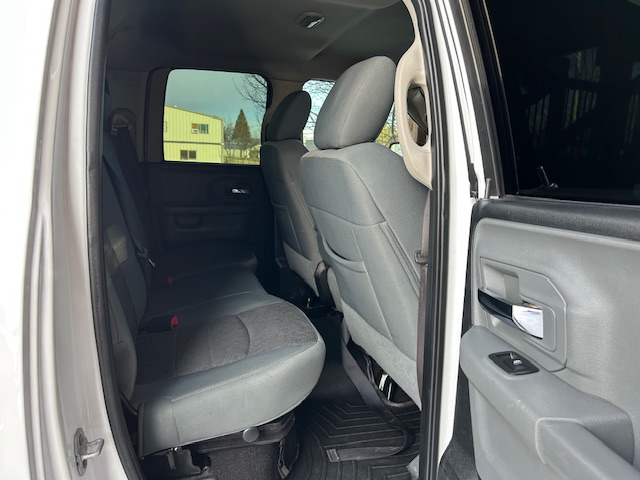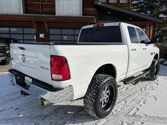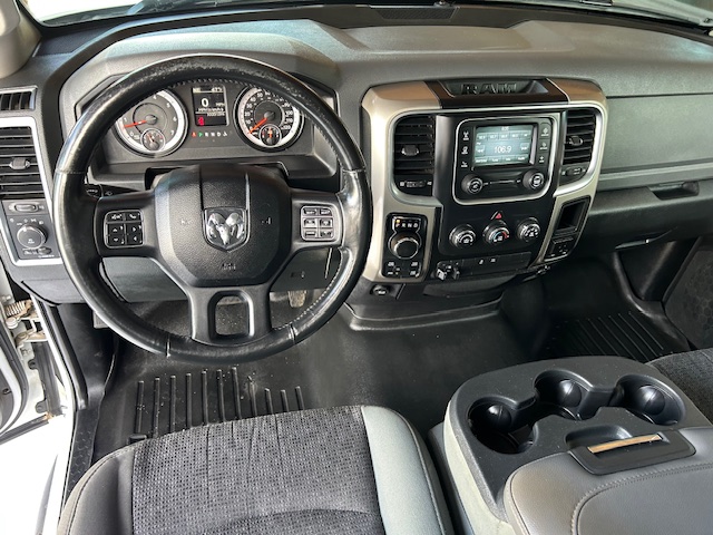 This is a 2015 Ram 1500 SLT double cab 4×4 pickup with the 5.7L HEMI 8-cylinder gas engine and an automatic transmission. It is bright white with gray cloth interior. This Ram has 103,000 miles. This Ram from Woodland, California. It has the SLT Big Horn package with UConnect, nerfbar side steps, power driver’s seat, power windows and locks, cruise control, Class III tow package, rhino-lined bed, fog lamps, remote start, and Weathertech mats. It has all power options, suspension lift, Fuel 2-piece 20-inch alloy wheels with nice Red Dirt Road RT 35×12.50×20 all-terrain tires, bluetooth, 40/20/40 front seat, CARFAX guaranteed, professionally serviced and detailed.