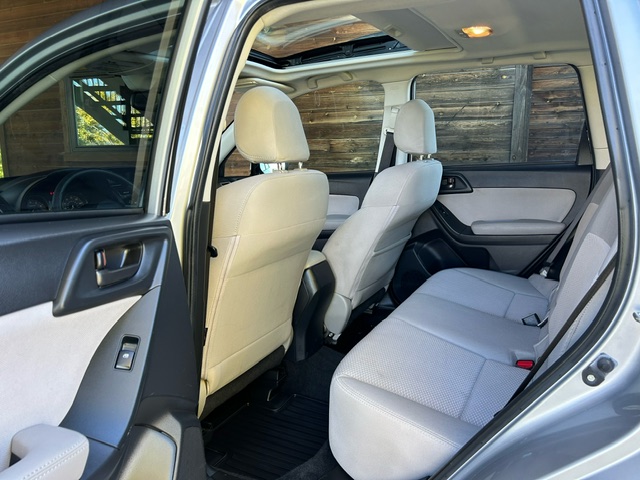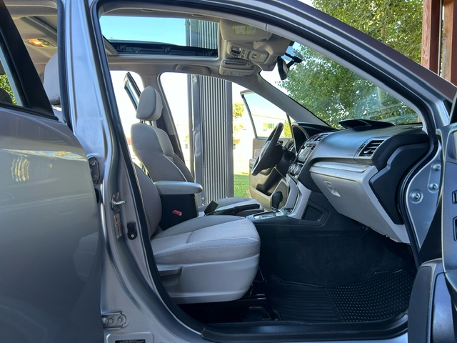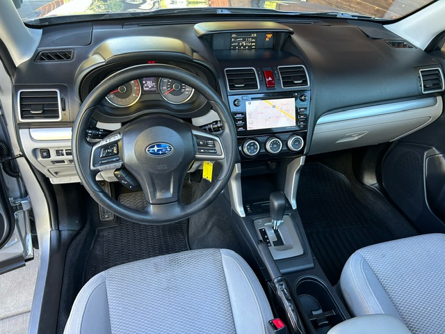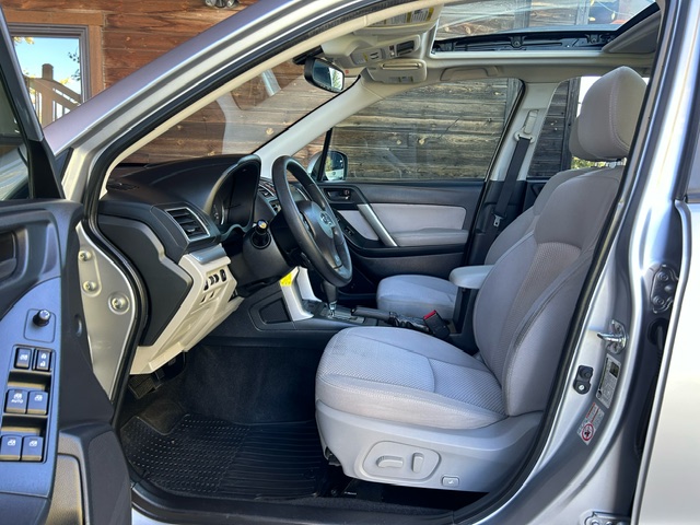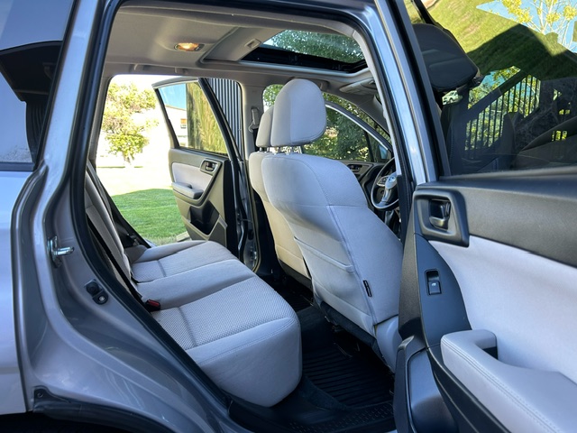 This is a 2016 Subaru Forester 2.5I Premium AWD with the 2.5L 4-cylinder engine and a CVT automatic transmission. It is Silver Pearl with gray cloth interior and has 127,000 miles. This Subaru has heated cloth seats, big panoramic power glass moonroof, power driver’s seat, roof rack, USB port, privacy glass, EyeSight, Bluetooth, stereo/CD, back-up camera, dual climate control, 17-inch silver alloy wheels with new all-season tires and all power options including air conditioning and cruise control. It is rated 29mpg for highway and 22mpg in town. This Forester is a 3-owner from Phoenix, Arizona that has been well maintained at the Subaru dealership and has been owned by a non-smoker. This Forester has a timing chain, not a timing belt. CARFAX guaranteed, professionally serviced and detailed.