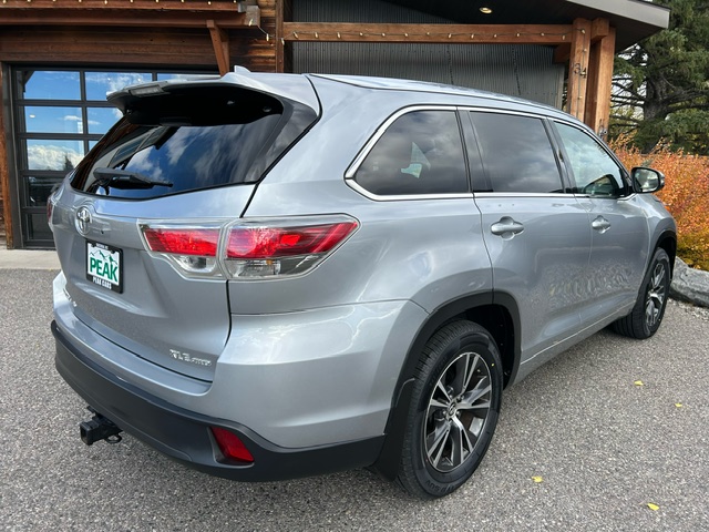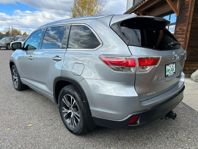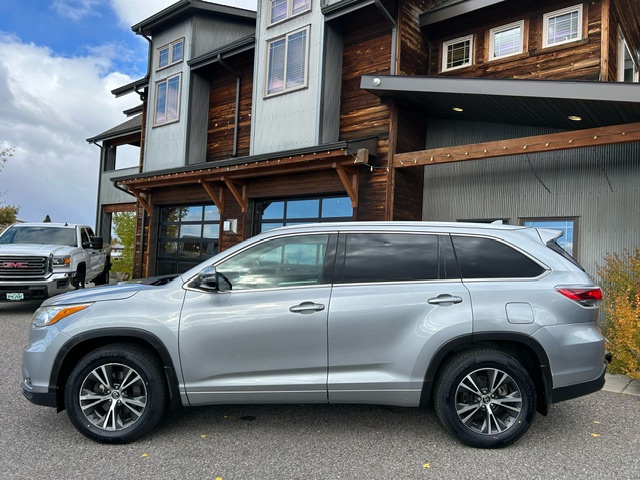 This is a 2016 Toyota Highlander XLE all-wheel drive with the 270HP DOHC 3.5L 6-cylinder and a 6-speed automatic transmission. It is silver sky metallic with black leather interior. This Highlander has 87,000 miles. It has heated leather seats, power glass moonroof, back-up camera, third row fold away seats, center row bench seating, 18-inch argent alloy wheels with new all-season tires, Sirius/XM/Aux input, power liftgate, protection package, traction control, snow mode, downhill assist control, fog lights, rear privacy glass and floor mats. It is EPA rated at 24 mpg highway and 18mpg city. This Highlander is a two-owner that has been well maintained and has been non-smoker owned. CARFAX guaranteed, professionally serviced and detailed.