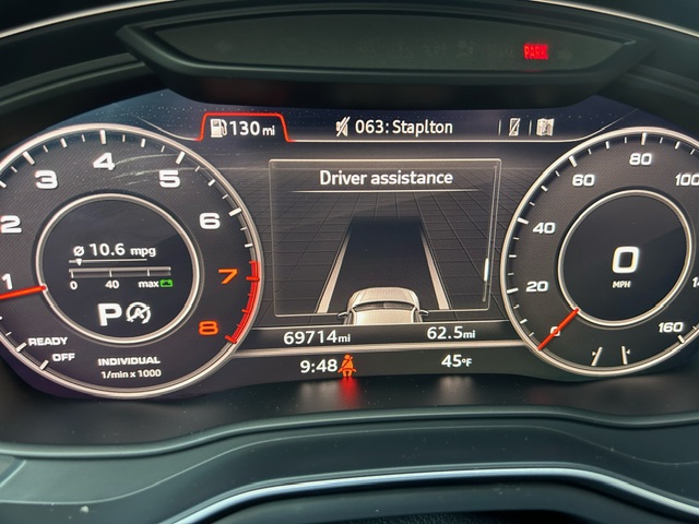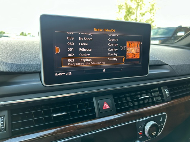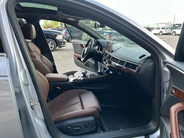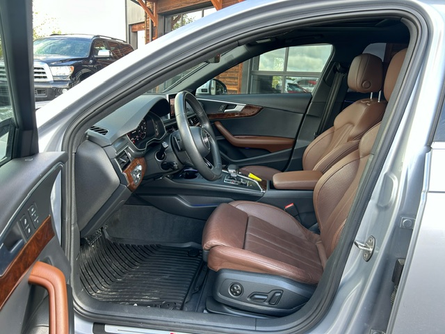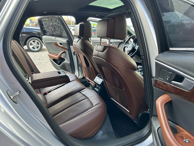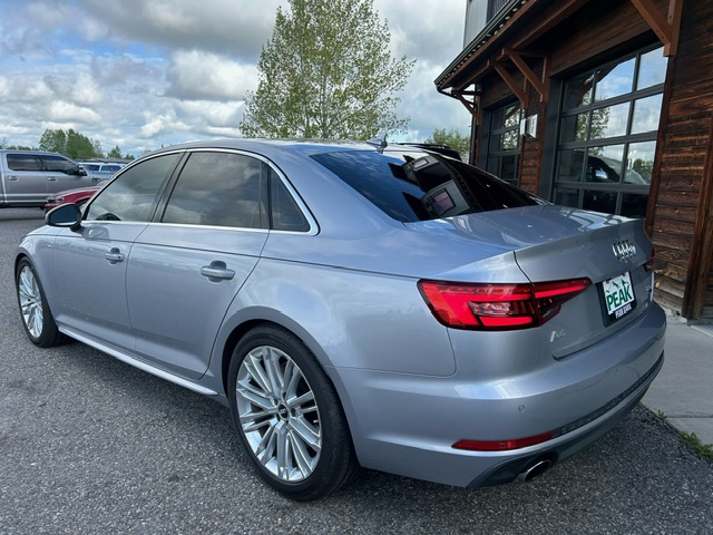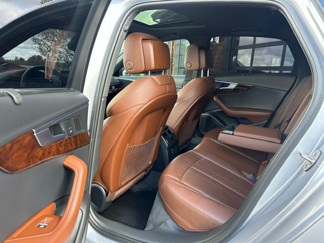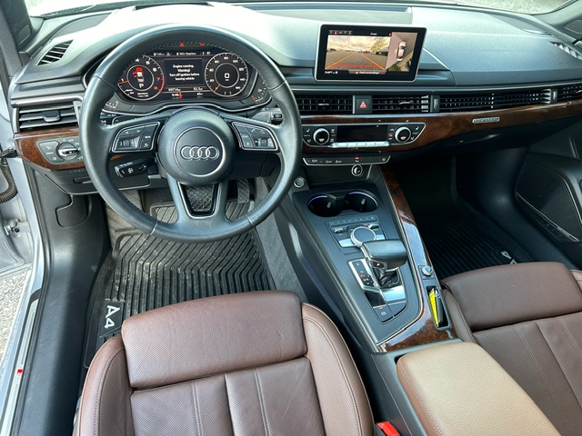 This is a 2017 Audi A4 Quattro Prestige S-Line all-wheel drive sedan with the 4-cylinder 2.0L 252hp gas engine and a 7-speed S-tronic automatic transmission. It is Bright Silver Metallic with naugahyde brown leather interior. It has 69,000 miles. The Prestige trim level is the highest model in the A4 lineup. This all-wheel drive Audi has heated/cooled front seats, convenience package, Sport package with black headliner and sport seats, 19″ silver design wheels with new Continental all-season tires, alarm system, Sirius, Xenon headlights, power glass moonroof, rearview camera, USB cables, and navigation. Audi estimates that the A4 Prestige can run from 0 to 60 mph in only 6.1 seconds. The Prestige trim includes the Audi virtual cockpit (12.3″ LCD fully digital instrument cluster), MMI® navigation plus with voice control system with 8.3″ center display, Audi side assist and Audi pre sense® rear with rear cross traffic alert and vehicle exit assist, Head-up display with navigation and assistance systems information, and Parking System Plus with top view camera system. The Prestige trim level also includes highlights like auto dimming and power folding mirrors, keyless entry and ignition, driver memory settings, LED headlights, both front and rear parking sensors, and a premium 19-speaker Bang & Olufsen audio system.Additions for this trim level include the Audi Side Assist feature and Audi pre sense rear with rear cross traffic alert and vehicle exit assist systems, Audi pre sense basic collision preparation, Audi pre sense city forward collision prevention braking. This is a 1-owner from Las Vegas, Nevada. EPA rated at 24mpg city and 31mpg highway. CARFAX guaranteed, professionally serviced and detailed.
