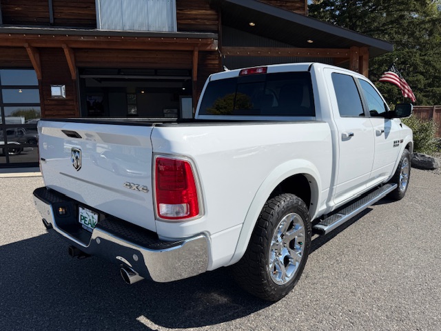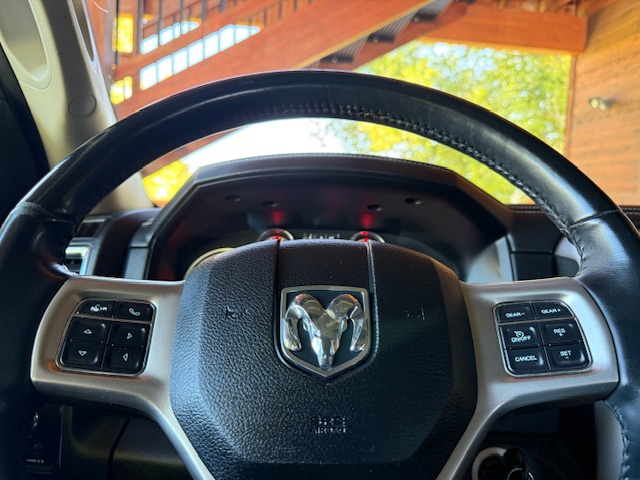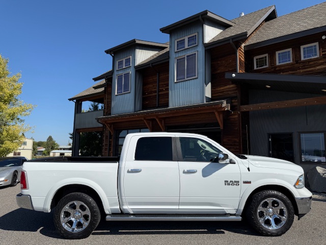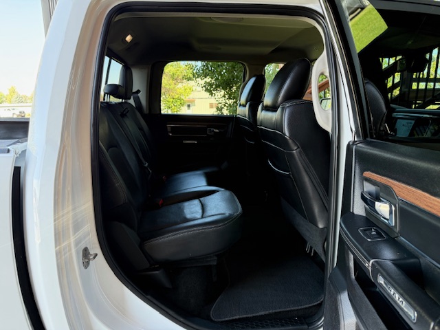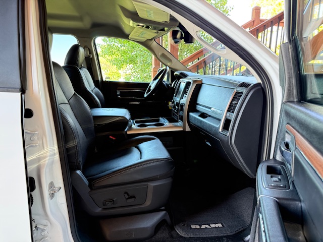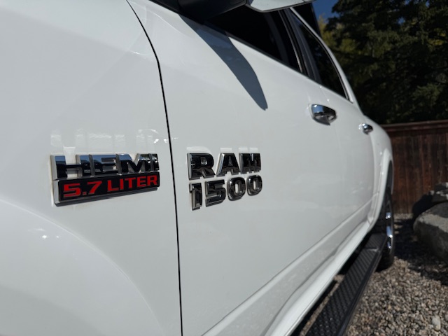 This is a 2017 Ram 1500 Laramie Crew Cab 4×4 pickup with the 5.7L Hemi gas engine and an 8-speed automatic transmission. It is Bright White Clearcoat in color with black leather interior. This truck has 104,000 miles. It has all power options including heated/ cooled leather bucket seats, heated steering wheel, heated second row seats, power rear glass window, 8.4 inch UConnect touch screen radio/XM with navigation, Alpine amplified stereo with factory subwoofer, LED bed lighting, front and rear parking sensors, chrome side steps and factory 20″ chrome wheels with nice Nitto Recon Grappler all-terrain tires. This Ram is a 1-owner truck from San Juan Capistrano California that has been well maintained and has been non smoker owned. CARFAX guaranteed, professionally serviced and detailed.