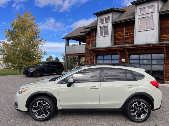 This is a 2017 Subaru CrossTrek Premium 5-door wagon with the 2.0L DOHC 4-cylinder gas engine and a CVT automatic transmission. It is desert khaki with black cloth interior and has 109,000 miles. It has heated cloth seats, back-up camera, 17-inch alloy wheels with nice Yokohama Avid Touring all-season tires, rear privacy glass, roof rack, fog lights, all power options, cd player/Sirius radio, Bluetooth capabilities, sunshade and rear cargo mat. This Crosstrek is a two-owner from Seaside, California that has been well maintained and has been non-smoker owned. It is EPA rated for 26mpg city and 33mpg highway. This Subaru has a timing chain, not a timing belt. CARFAX guaranteed, professionally serviced and detailed.