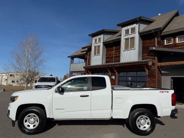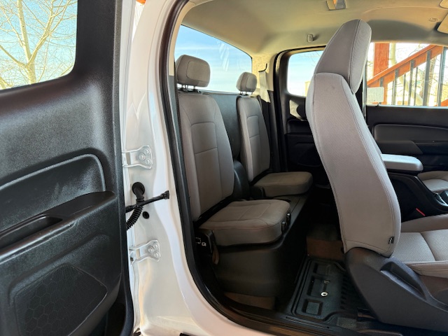This is a 2018 Chevrolet Colorado WT 4×4 extended cab 6ft box pickup with the 2.5L DOHC inline 4-cylinder gas engine and an automatic transmission. It has 124,000 miles. It is bright white with gray cloth interior. This Colorado is from southern California. It has a power front seat, power windows and locks, cruise control, bed light, back-up camera, factory stereo, 17-inch factory wheels with nearly new Cooper Road & Trail all-terrain tires, bluetooth, tool box, rear privacy glass. It is EPA rated at 19mpg city and 24mpg highway. It has been well maintained since new. Carfax guaranteed, professionally serviced and detailed.