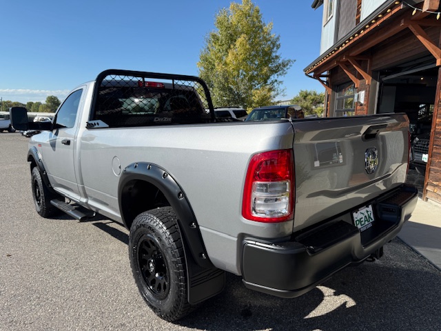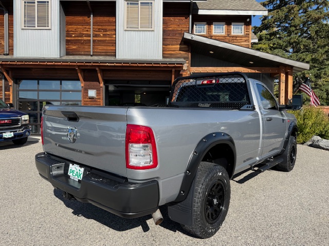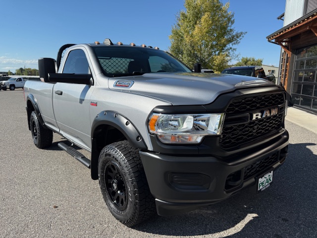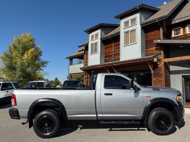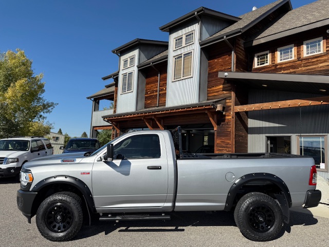 This is a 2019 Ram 2500 Regular Cab Tradesman 4×4 with the 6.4L 392 HEMI gas engine and an 8-speed automatic transmission. It is Billet Silver with black/gray vinyl interior and has 29,000 miles. It has all power options, 3.73 axle ratio, trailer brake controller, vinyl floors, tinted windows, headache rack, gooseneck ball, Uconnect 3 with Bluetooth and backup camera, Snow Chief plow prep. group, clearance lamps, 220-amp alternator, 18-inch Fuel wheels with nice 275/70/18 Falken Wild Peak all-terrain tires, big tow mirrors, rear park sense, nerf bars, fender flares, spray-in bed-liner and factory tow package. This Ram is a 1-owner from Bozeman that has been well maintained and has been non smoker owned. CARFAX guaranteed, professionally serviced and detailed.