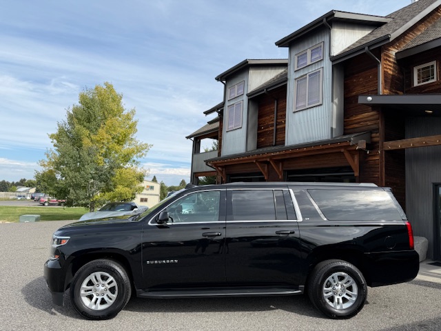 This is a 2020 Chevrolet Suburban LT four-wheel drive with the 5.3L 8-cylinder gas engine and an automatic transmission. It is black with black leather interior and has 106,000 miles. This Suburban has power options including power moonroof, lane assist, adjustable power pedals, navigation, back-up camera, heated front leather seats, rear bench seating, fold-away third row seats, parking sensors, power liftgate, tinted windows, factory BOSE stereo/CD player/Bluetooth, fixed running boards, Class III tow package and 18-inch factory alloy wheels with new Michelin Prmiacy all-season tires. It is EPA rated for 21 mpg highway and 14 mpg city. This Suburban is a clean two-owner from Las Vegas, Nevada that has been well maintained and has been non-smoker owned. CARFAX guaranteed, professionally serviced and detailed.