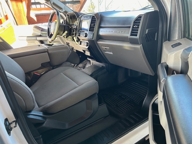 This is a 2020 Ford F250 Super Duty, 160″ WB, 4-door crew cab XLT 4×4 pickup with the 6.2L 8-cylinder gas engine and a 6-speed automatic transmission. It is bright white with dark gray cloth interior and black plastic floors. It has 131,000 miles. This 6-passenger F250 has a factory stereo, 40/20/40 front bench seat, power windows, and locks, air conditioning, cruise control, with new BlackHawk 10-ply all-terrain tires, 4.30 electronic locking axles, platform running boards, skid plates, rear window defrost, 200-amp alternator, camper package, remote start, reverse sensing system, tailgate step, spray-in factory bedliner, 8-way power driver’s seat, air conditioning, and receiver hitch. This F250 is a 2-owner from Visalia, California that has been well maintained. CARFAX guaranteed, professionally serviced and detailed.