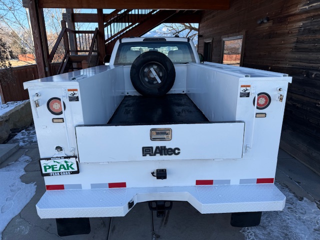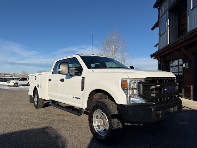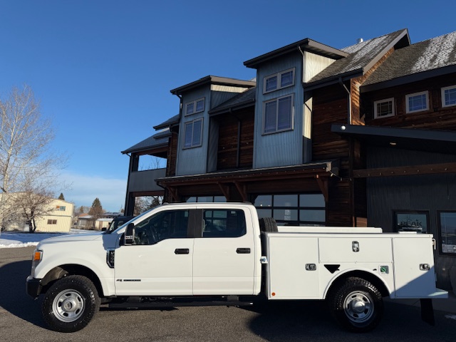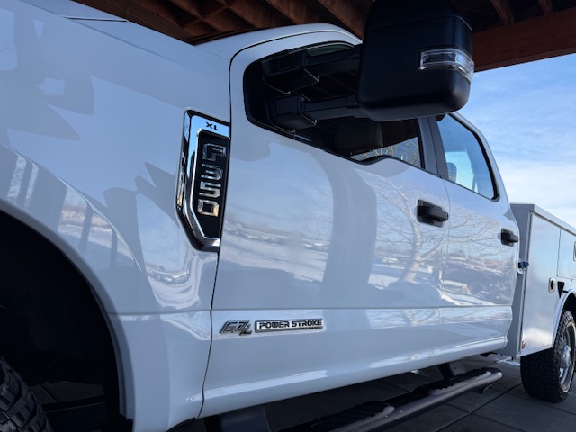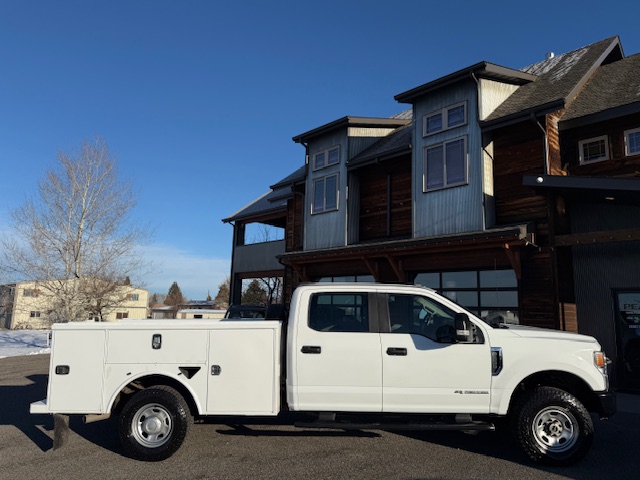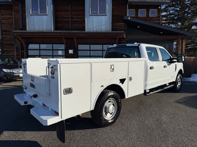 This is a 2020 Ford F350 Superduty XL crew cab long-box 179″ WB 4×4 with the 6.7L PowerStroke Turbo-Diesel and a 10-speed automatic transmission. It is bright white with steel gray vinyl interior and black plastic floors and has 114,000 miles. It has the 3.73 ratio electronic locking rear axle, engine block heater, power equipment group with power windows and locks, snow-plow prep. package, trailer brake controller, 332 amp alternator, nerf bar side steps, pre-collision assist, back-up camera and 18-inch factory steel wheels with nice Falken WildPeak all-terrain tires. It has an Altec utility box with lockable storage. This F350 is a Califronia two-owner that has been well maintained and has been non-smoker owned. CARFAX guaranteed, professionally serviced and detailed.