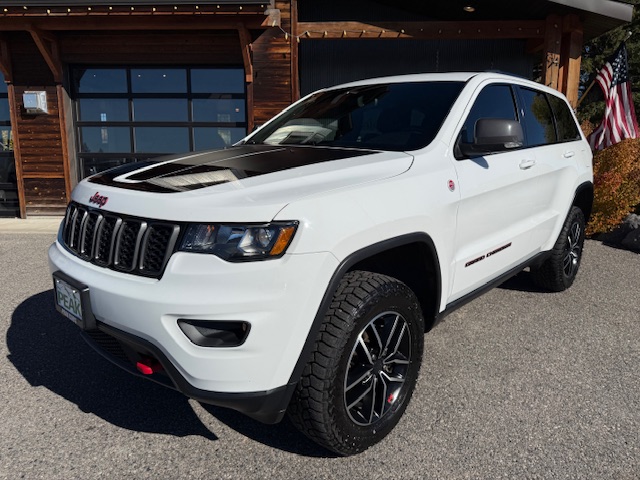 This is a 2020 Jeep Grand Cherokee Trailhawk 4×4 with the 3.6L Pentastar 6-cylinder gas engine and an 8-speed automatic transmission. It is Bright White with black/ruby red leather interior and has 52,000 miles. It has all standard options including Quadra-trac II 4×4 with select terrain, parkview rear back-up camera, keyless enter and go, trailer-tow group, 8.4″ Uconnect HD radio, bluetooth, Sirius, heated and ventilated front seats, heated steering wheel, heated second row seats, power driver and passenger seats, 18-inch off-road aluminum wheels with nice Falken Rubitrek all-terrain tires, dual pane panoramic sunroof, power liftgate, Trailhawk luxury group, running boards, halogen headlamps, LED taillights, and blind spot and cross path detection. EPA rated for 18mpg city and 25mpg highway. This Trailhawk is a 1-owner from Bozeman that has been well maintained and has been non-smoker owned. CARFAX guaranteed, professionally serviced and detailed.