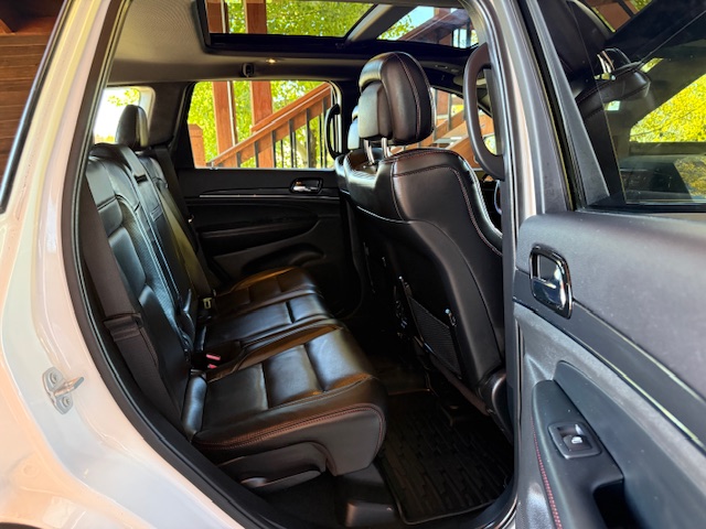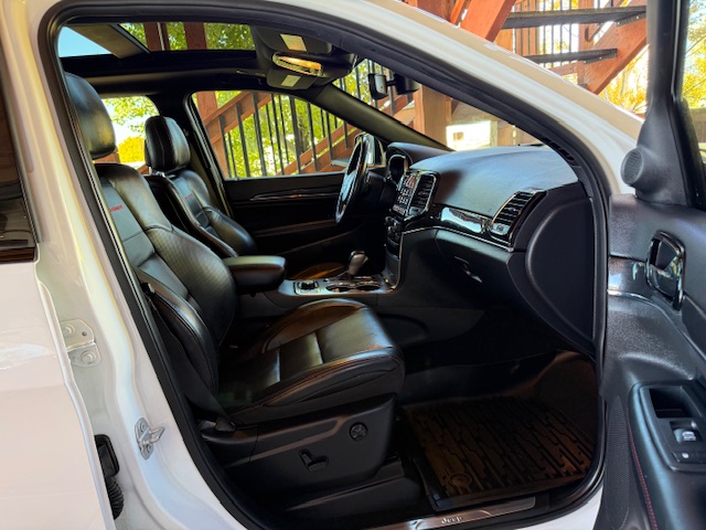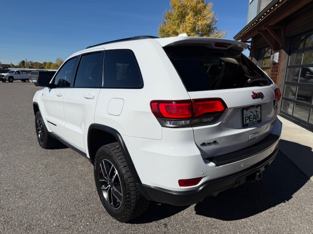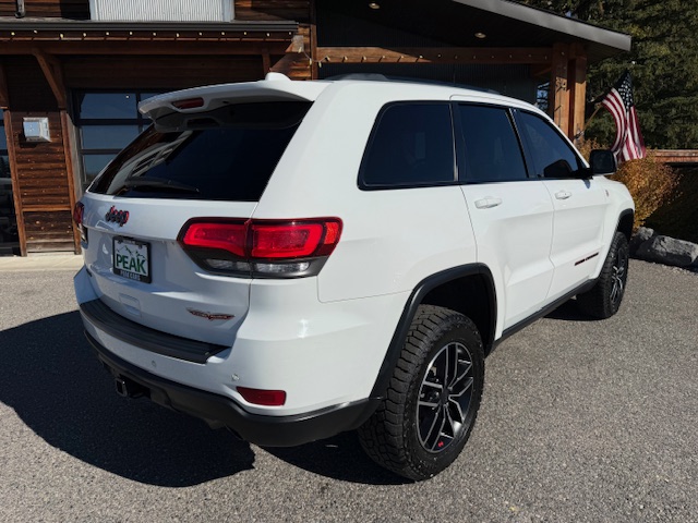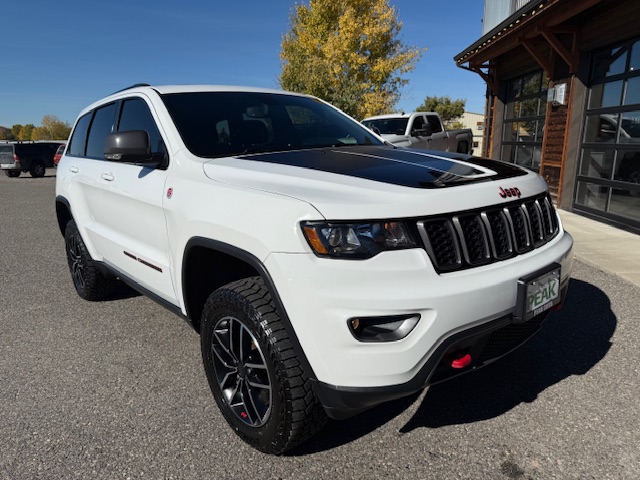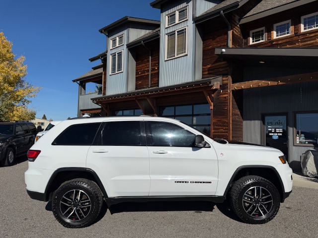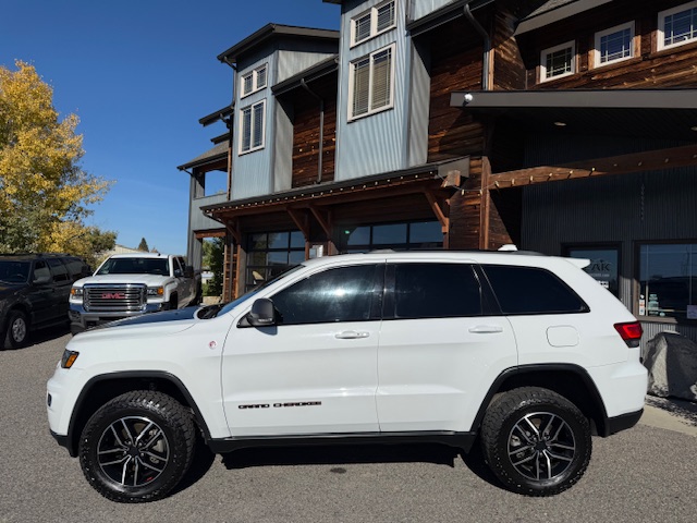 This is a 2020 Jeep Grand Cherokee Trailhawk 4×4 with the 3.6L Pentastar 6-cylinder gas engine and an 8-speed automatic transmission. It is Bright White with black/ruby red leather interior and has 52,000 miles. It has all standard options including Quadra-trac II 4×4 with select terrain, parkview rear back-up camera, keyless enter and go, trailer-tow group, 8.4″ Uconnect HD radio, bluetooth, Sirius, heated and ventilated front seats, heated steering wheel, heated second row seats, power driver and passenger seats, 18-inch off-road aluminum wheels with nice Falken Rubitrek all-terrain tires, dual pane panoramic sunroof, power liftgate, Trailhawk luxury group, running boards, halogen headlamps, LED taillights, and blind spot and cross path detection. EPA rated for 18mpg city and 25mpg highway. This Trailhawk is a 1-owner from Bozeman that has been well maintained and has been non-smoker owned. CARFAX guaranteed, professionally serviced and detailed.