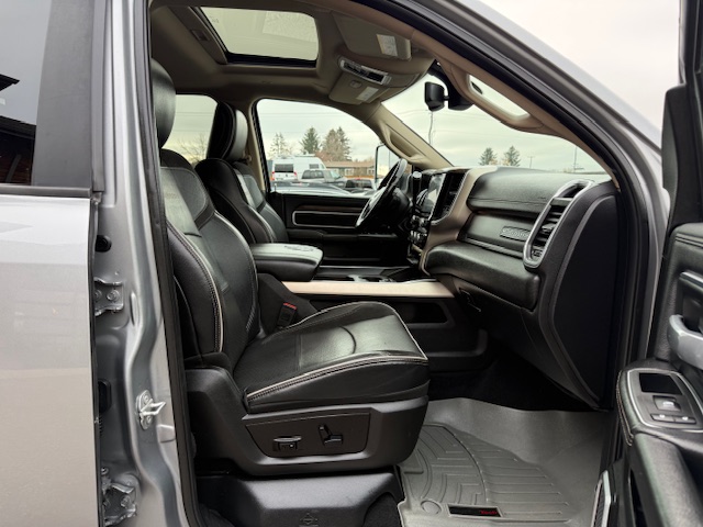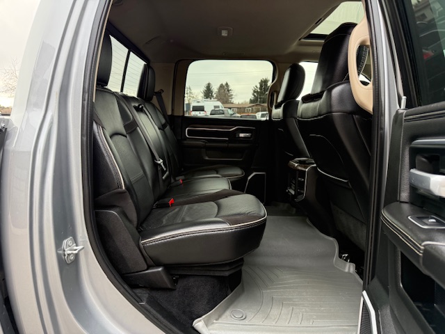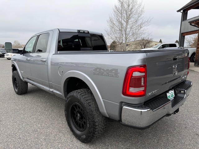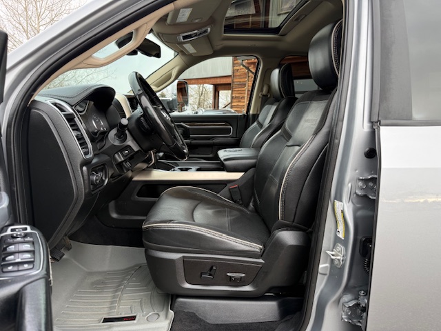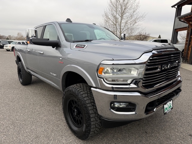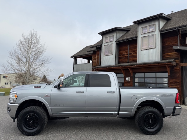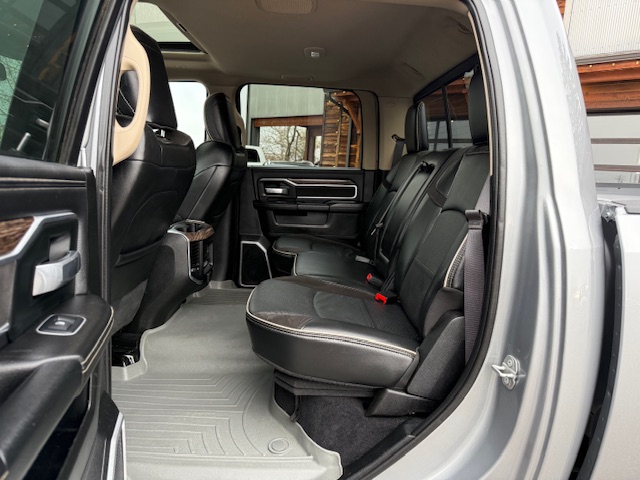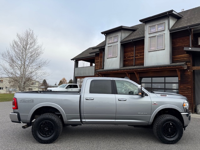 This is a 2020 Ram 2500 Laramie Crew-Cab 6’4″ short box 4×4 pickup with the 6.7L inline-6 cylinder turbo-diesel and a 6-speed 68RFE automatic transmission. It is Billet Silver Metallic with black leather interior. This truck has 119,000 miles. It has all power options including heated seats, heated steering wheel, back-up camera, protection group (skid plate), convenience group, remote start, fog lights, tow technology group with surround vision camera, 3.73 rear axle ratio, power sunroof, exhaust brake, keyless go, 18-inch Method wheels with new 305/70/18 Goodyear Wrangler Territory MT tires, UConnect 8.4, media hub with 2 USB and Aux, suspension lift with Fox shocks, power folding/heated tow mirrors, and LED bed lighting. This Ram is a 1-owner from southern California truck that has been very well maintained and has been non-smoker owned.