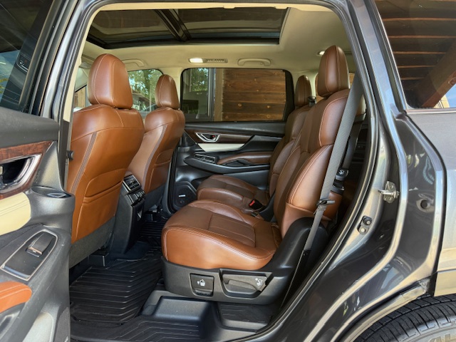This is a 2020 Subaru Ascent Touring 7-passenger all-wheel drive wagon with the 260HP 2.4-liter turbocharged boxer four-cylinder DOHC 16-valve engine and a Lineartronic high torque automatic CVT transmission with 8-speed manual mode and has 64,000 miles. This Subaru is Magnetite Gray Metallic with black leather interior. It has heated front seats, middle row bucket seats, heated steering wheel, 8.0 Starlink navigation, factory 20-inch alloy wheels with nice Falken all-season tires, EyeSight advanced safety system, blind spot detection, panoramic glass moonroof, navigation, Harman Kardon stereo, privacy glass, roof rack, power driver’s seat, cruise control, rear back-up camera, steering wheel controls, lane assist, bluetooth compatible LED headlights and fog lights, heated side mirrors, keyless entry, push button start, third row seats, power liftgate and all other power options. It is rated for 22mpg city and 27mpg highway. This Ascent is a 2-owner from Palm Springs, California that has been very well maintained and has been non-smoker owned and has never seen snow. CARFAX guaranteed, professionally serviced and detailed. Warranties available.