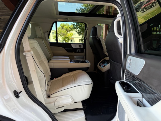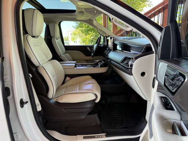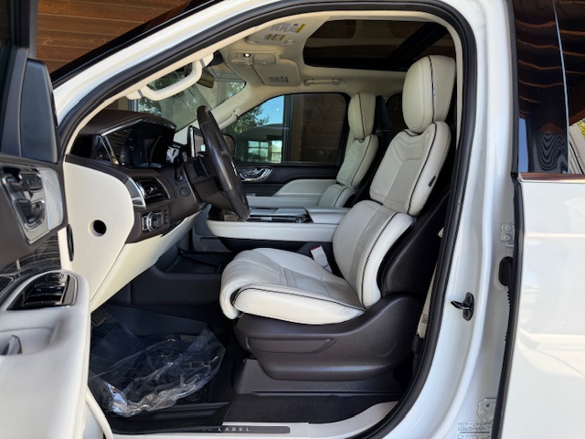 This is a 2021 Lincoln Navigator Black label edition 4×4 with the 450HP 3.5L twin turbo 6-cylinder engine and an 10-speed automatic transmission. It is pristine white in color with chalet theme leather interior and has 62,000 miles. It has all power options including heated and cooled front seats, heated rear bucket seats, factory navigation, heated steering wheel, power glass moonroof, second row rear entertainment/TV/DVD, Revel ultimate 20 speaker stereo, power adjustable seats, HUD heads up display, power third row fold-away seats, dual a/c and heat, LED headlights, fog lights, remote start, adaptive cruise control, wireless charging pad, adjustable pedals, 22-inch factory black wheels with nice Pirelli all-season tires, factory Class III tow package, privacy glass, roof rack and power running boards. This is a local Navigator that has been well maintained and has been non-smoker owned. CARFAX guaranteed, professionally serviced and detailed.