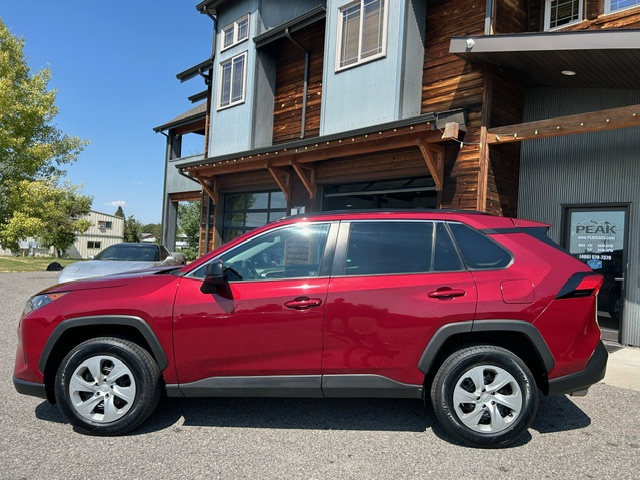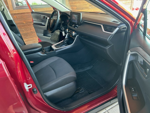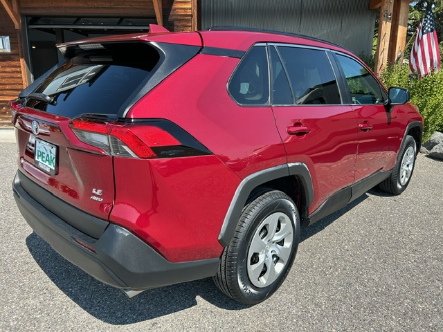 This is a 2021 Toyota Rav4 LE all-wheel drive with the 2.5L 4-cylinder gas engine and an automatic transmission. It is Ruby Flare Pearl with black cloth interior and has 92,000 miles. This Rav4 has all power options including factory touch screen stereo/bluetooth compatible, apps menu, back-up camera, rear spoiler, air conditioning, cruise control, 17-inch wheels with new all-season tires, Eco mode and Sport mode. It is EPA rated for 25mpg city and 33mpg highway. This Rav4 is a 2-owner from Riverside, California that has been very well maintained and has been non-smoker owned. CARFAX guaranteed, professionally serviced and detailed.