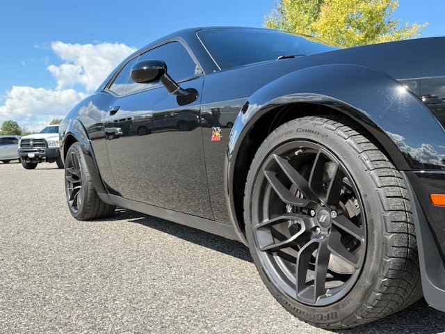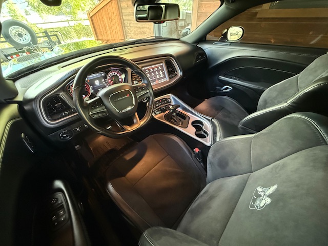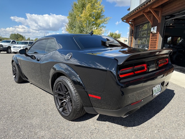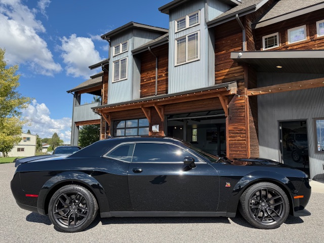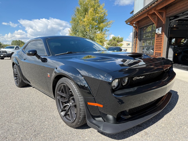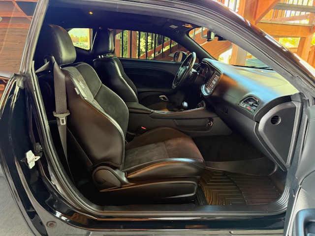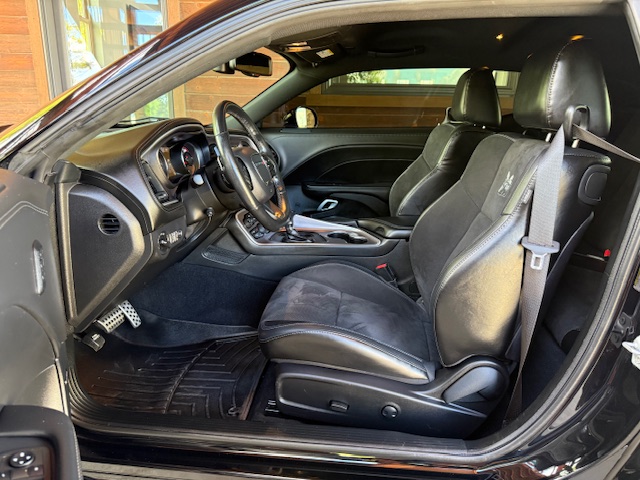 This is a 2022 Dodge Challenger R/T Scat Pack Widebody with the 6.4L 392 8-cylinder engine and a TorqueFlite 8-speed automatic transmission and has 47,000 miles. This Challenger R/T Widebody is Pitch Black in color with Black interior and Alcantara/Nappa performance seats. This car has all power options including the widebody package with flat-bottom steering wheel, flares, and competetion suspension. It has heated and cooled front seats, heated leather steering wheel, ambient lighting, Plus package, Driver Convenience Group, 18-speaker Harman Kardon stereo with subwoofers, rear SRT Performance spoiler, Uconnect 8.4, Parkview back-up camera, rear park assist, remote start, HID lights, blind spot and rear cross path detection, Dodge performance pages, power tilt/teloscope column, 20×11 Devils Rim Granite alloy wheels with 305/35/20 tires. This Challenger is from Las Vegas, Nevada and has been well maintained and has been non-smoker owned. $62,300 original MSRP. It is EPA rated for 15mpg city and 24mpg highway. Balance of 5yr/60,000 mile factory powertrain warranty. CARFAX guaranteed, professionally serviced and detailed.