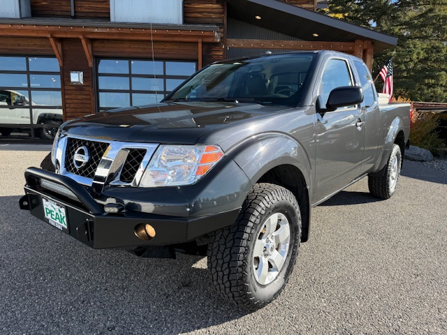 This is a 2013 Nissan Frontier Crew-Cab SV 4×4 pickup with the 4.0L 261HP 6-cylinder with a 6-speed manual transmission. It is graphite blue in color with with gray cloth interior and has 136,000 miles. It has all power options, power windows, power door locks, air conditioning, cruise control, factory CD player, back-up camera, bed-liner, tow package, factory alloy wheels with new Blackhawk All-terrain tires, running boards, privacy glass custom rear bumper and custom front bumper with LED light bar. It is rated for 15mpg city and 21mpg highway. This Frontier is a three-owner from Bozeman and California that has been very well maintained and has been owned by a non-smoker. CARFAX guaranteed, professionally serviced and detailed.