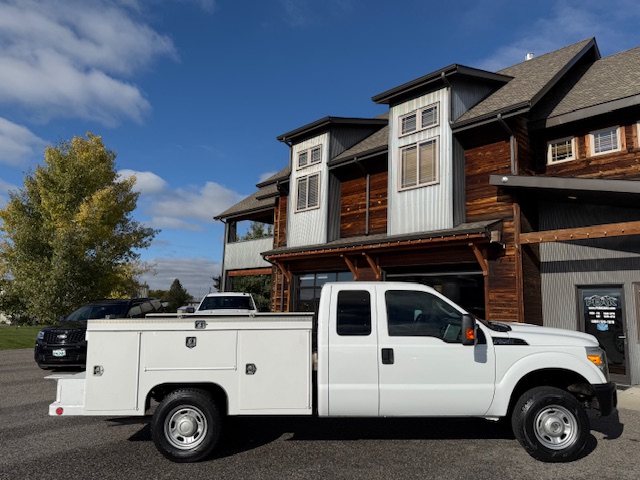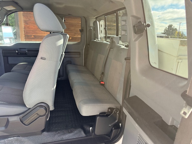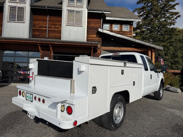 This is a 2011 Ford F250 Super Duty, 158″ WB, 4-door extended cab XL 4×4 pickup with the 6.2L 8-cylinder gas engine and a 6-speed automatic transmission. It is bright white with gray cloth interior. It has 79,000 miles. This F250 has all power options, 8-foot bed, FX4 off-road package, 12500lb hitch, power seats, power windows, power locks, sliding rear window, 17″ factory steel wheels with nice Wrangler Adventure all-terrain tires, 3.73 electronic locking gears, air conditioning, cruise control, and a Scelzi steel utility box. This F250 is a one-owner from Paso Robles, California that has been well maintained. CARFAX guaranteed, professionally serviced and detailed.
